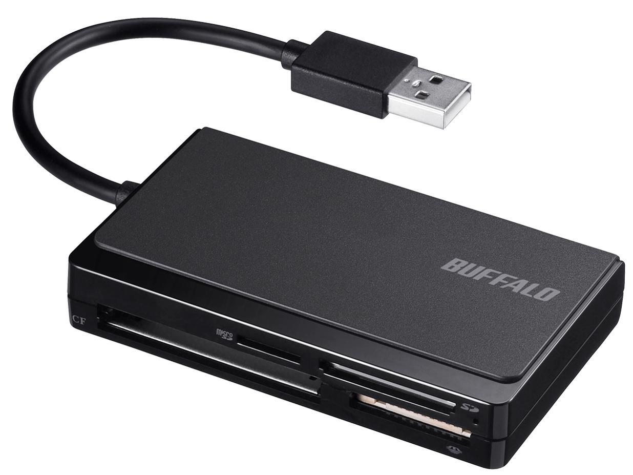 BUFFALO バッファロー BSCR300U2BK USB2.0 マルチカードリーダー ケーブル収納 ブラック