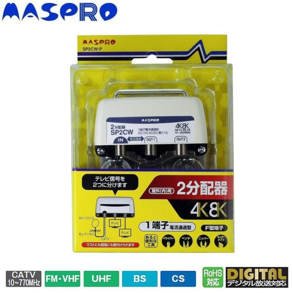 マスプロ電工 屋外(内)用 4K・8K衛星放送(3224MHz)対応 1端子電流通過型 2分配器 SP2CW-P (1172979)