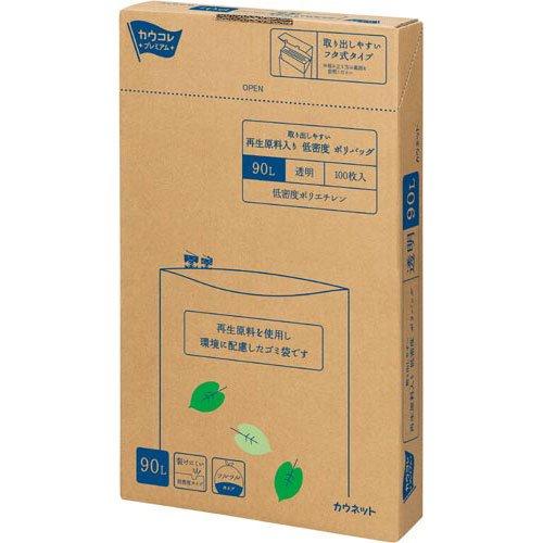 カウネット 取り出しやすい再生原料入り低密度 ポリバッグ 90L 透明 100枚
