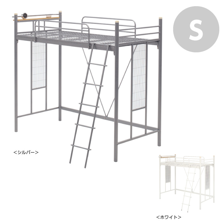 ロフトベッド ハイタイプ フレームのみ シングル パイプベッド 金属 頑丈 スチール 宮付き アイアン 宮棚付き / コンセント付き システムベッド モダン 北欧 ベット 高さ197 ホワイト シルバー 白 送料無料 das-0065