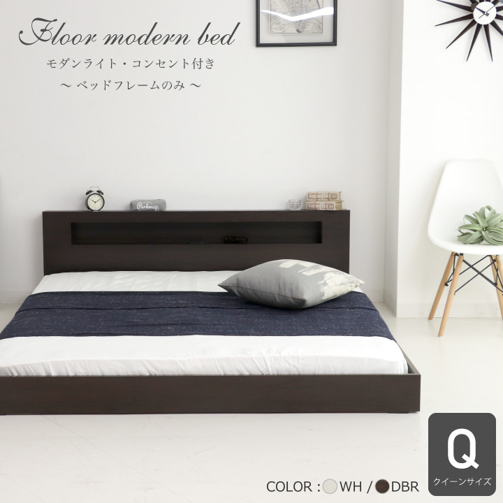 ベッド クイーン ベッドフレーム クイーンサイズ フレームのみ フロアベッド ローベッド 木製ベッド コンセント付き ライト付き ヘッドボード / ヘッド棚 宮 宮棚 北欧 モダン木製 人気 sanjp-0334