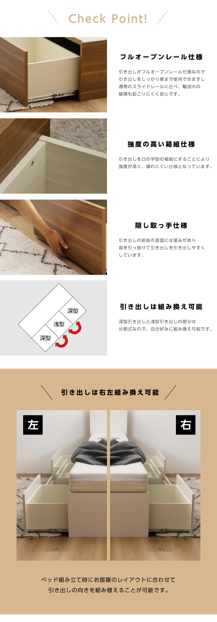 ベッド シングルベッド 収納付き 宮付き チェストベッド シングル フレームのみ 木製ベッド コンセント付き 収納ベッド / 引き出し付きベッド ベッド下収納 北欧 モダン 収納力 木製 木目調 sanjp-0809