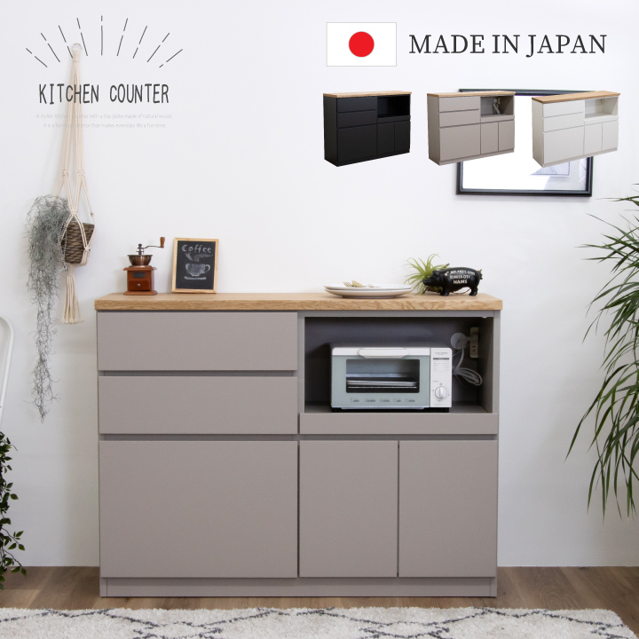 キッチンカウンター カウンターキッチン 幅120 レンジ台 木製 北欧 モダン / キッチンカウンター テーブル フルオープンレール 背面化粧仕上げ 可動棚 完成品 シンプル おしゃれ かわいい 白 黒 グレー 引き出し キッチン収納 大容量収納 通販 日本製 sanjp-0819
