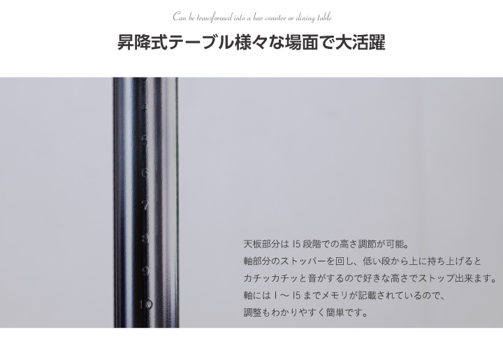 スクエア天板:幅90×奥行70×高さ65-95cm