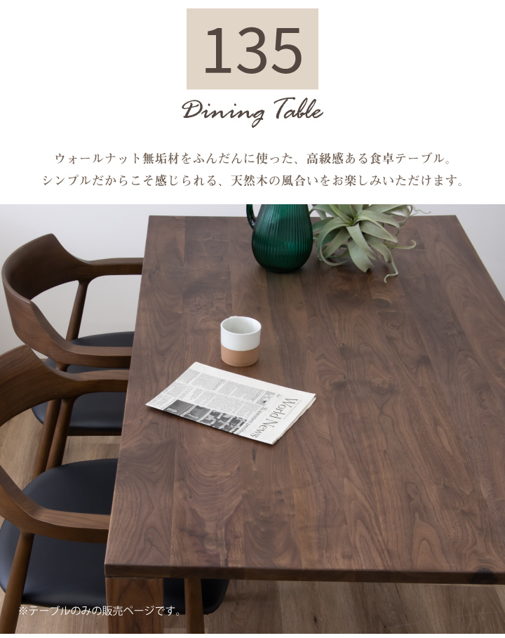 テーブル ダイニングテーブル 135幅 天然木 ウォールナット 無垢材 オイル塗装 / 長方形 無垢材 北欧 シンプル モダン 4人 135 ダイニング テーブル 単品 おしゃれ ブラウン 木製 無垢 食卓テーブル 北欧 通販 sanjp-0882