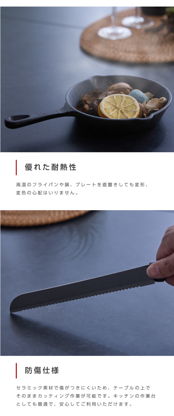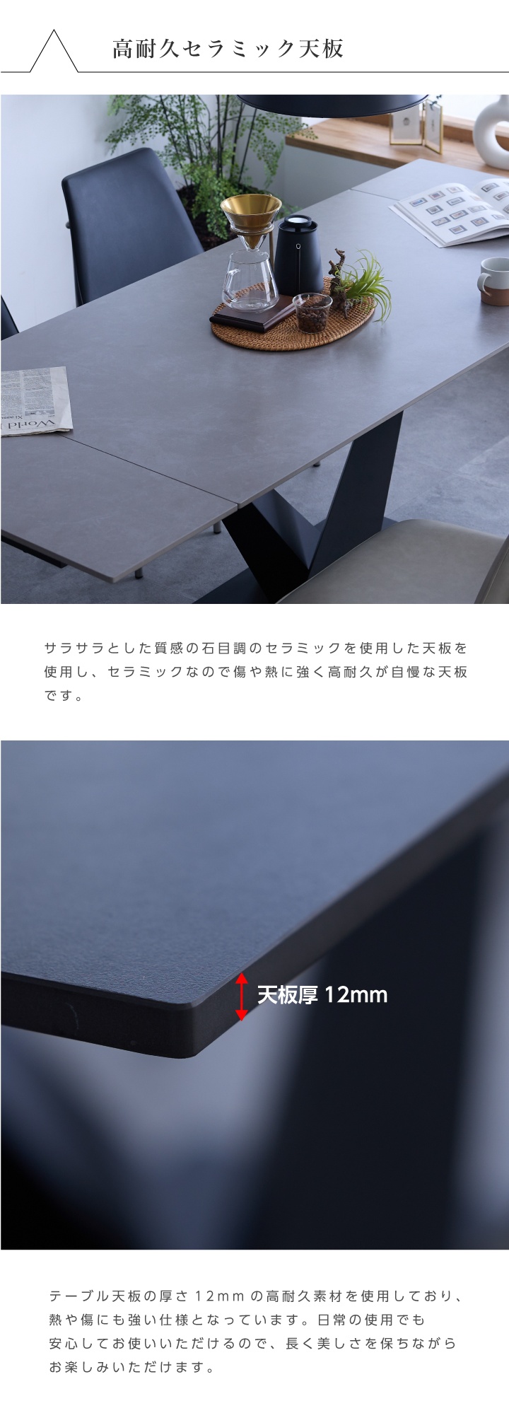 天板、脚は傷がつきにくく、熱に強い12mmのセラミックを使用