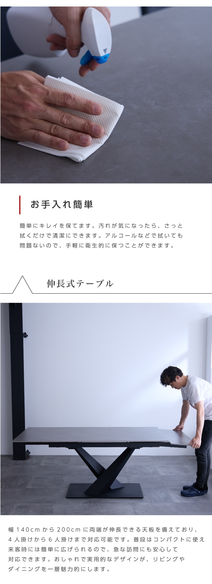 伸長式 ダイニングテーブル 幅140 回転 幅140~200cm 4人掛け 6人掛け セラミック 伸縮ダイニングテーブル スチール脚 モダン 伸縮 / 伸縮テーブル リビングテーブル 北欧 シンプル おしゃれ 通販