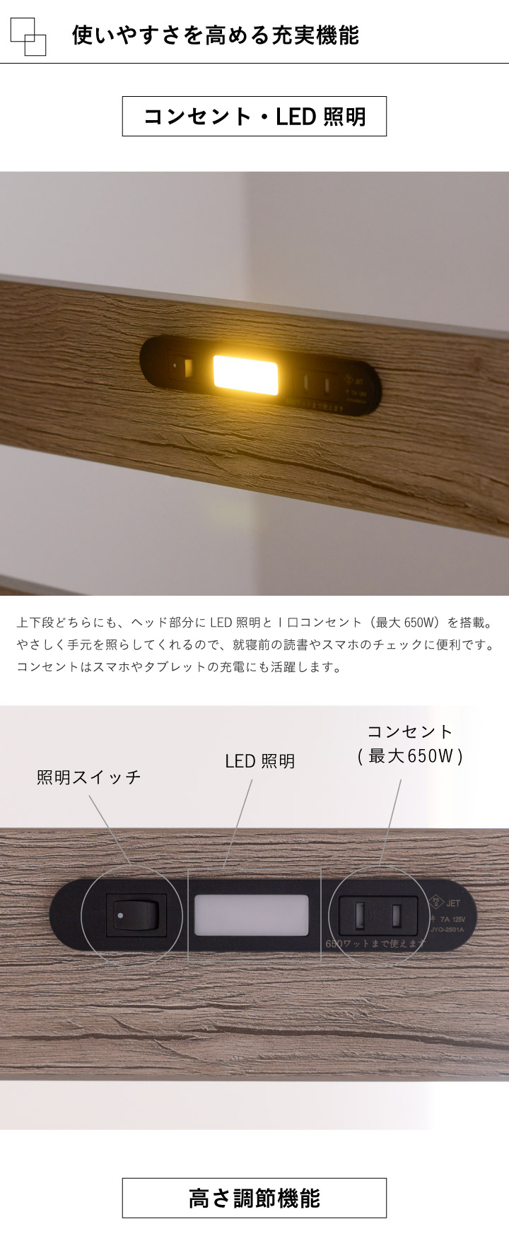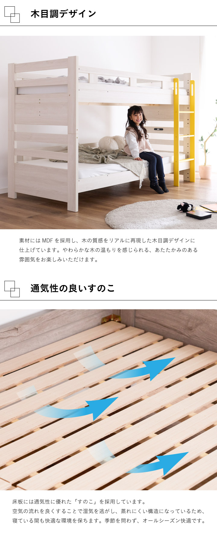 二段ベッド 大人用 2段ベッド 頑丈 子供用 コンパクト 木製ベッド LED 照明付き すのこ ベッド コンセント 子供部屋 シングル 北欧