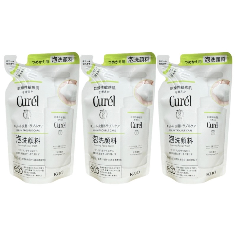 キュレル 皮脂トラブルケア泡洗顔料 つめかえ用 130ml 花王 詰め替え 3個セット 緑