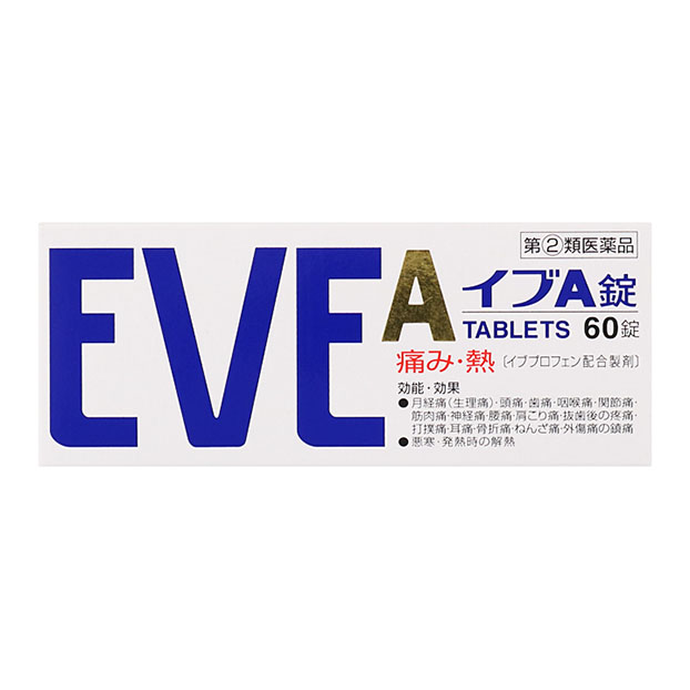 ○イブA錠は、痛み・熱にすばやくすぐれた効き目をあらわすイブプロフェンに、その鎮痛・解熱効果を高めるアリルイソプロピルアセチル尿素と無水カフェインを配合した製剤です。