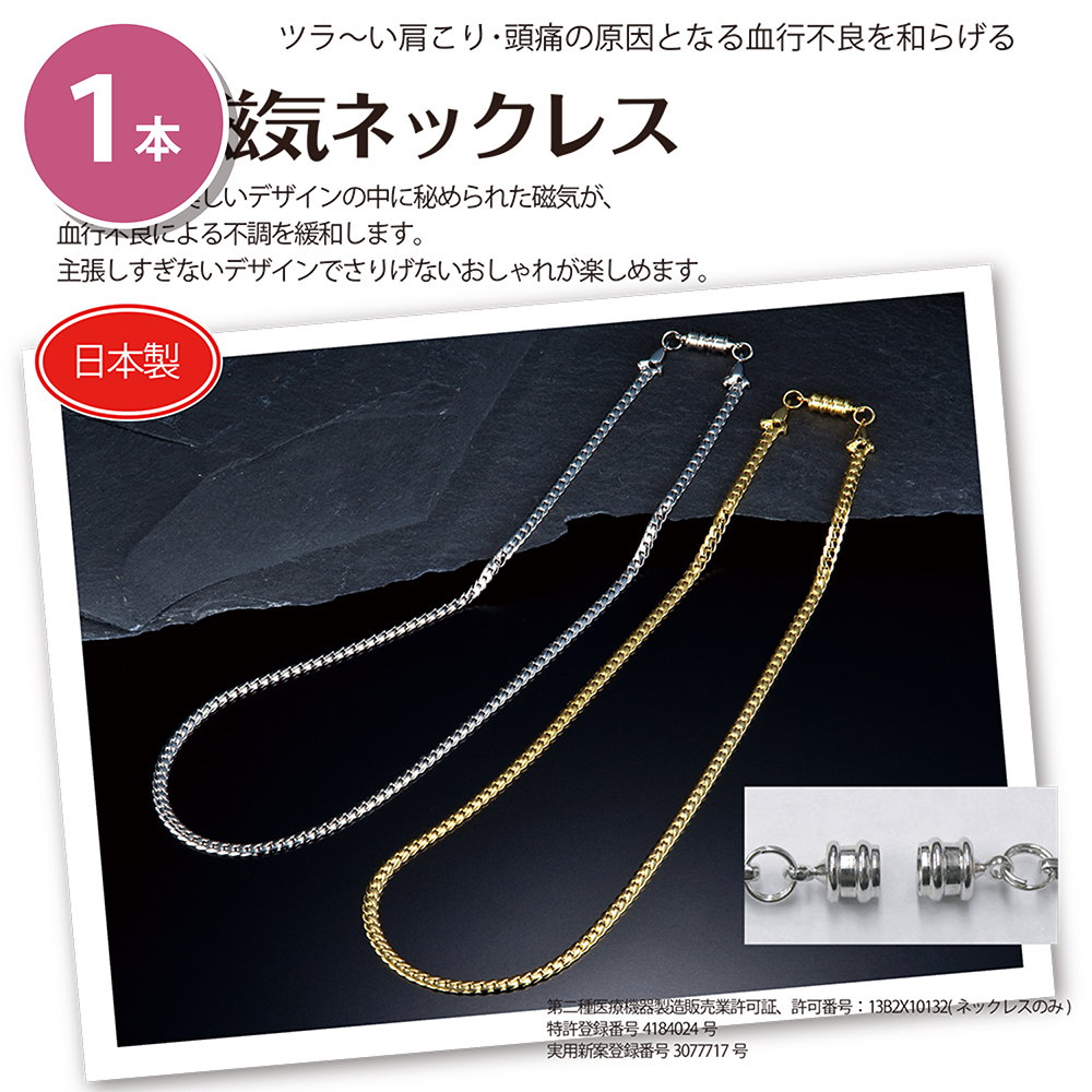 おしゃれな美しいデザインの中に秘められた磁気が血行不良による肩こり・頭痛を暖和します。