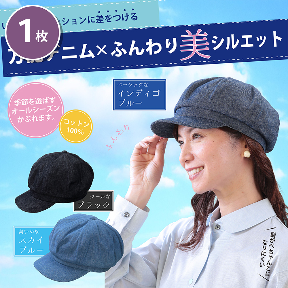 人気のデニム生地を使用したおしゃれなキャスケット。