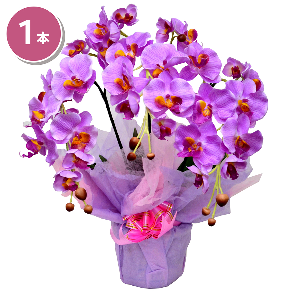 人工観葉植物なので水やりなどの世話は不要で、光が当たり続ける限り効果は半永久的。縁起のよい華やかな黄色の胡蝶蘭なので、インテリアに最適です。