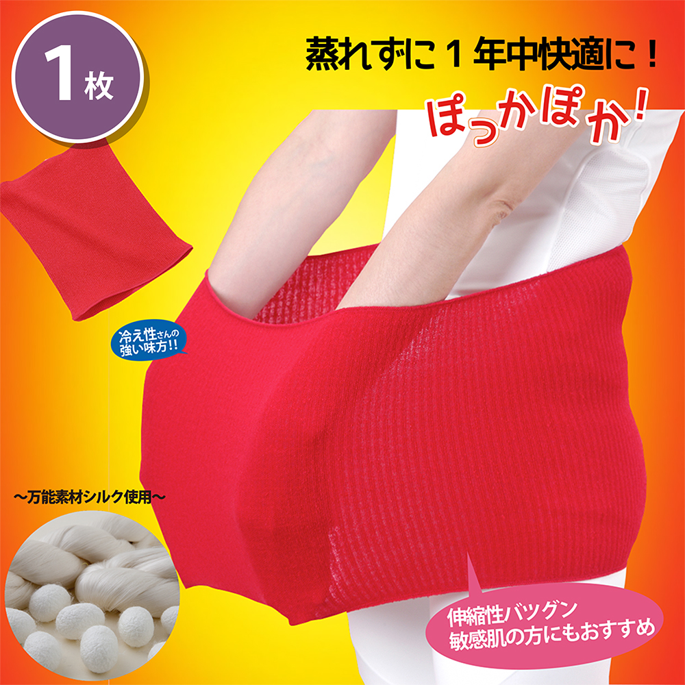 ゆったりシルク腹巻 レッド 保湿性 お肌しっとり 吸水性 放湿性 蒸れずに 一年中快適 敏感肌 天然素材 薄いのに 日本製 マタニティ 妊婦 Eclea 爆売 爆買