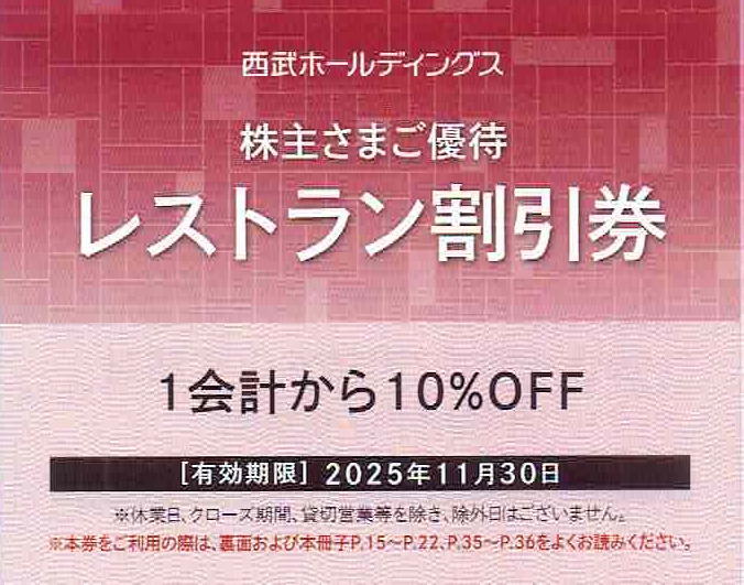 西武ホールディングス 株主優待 レストラン割引券 10%引 25年11月30日まで