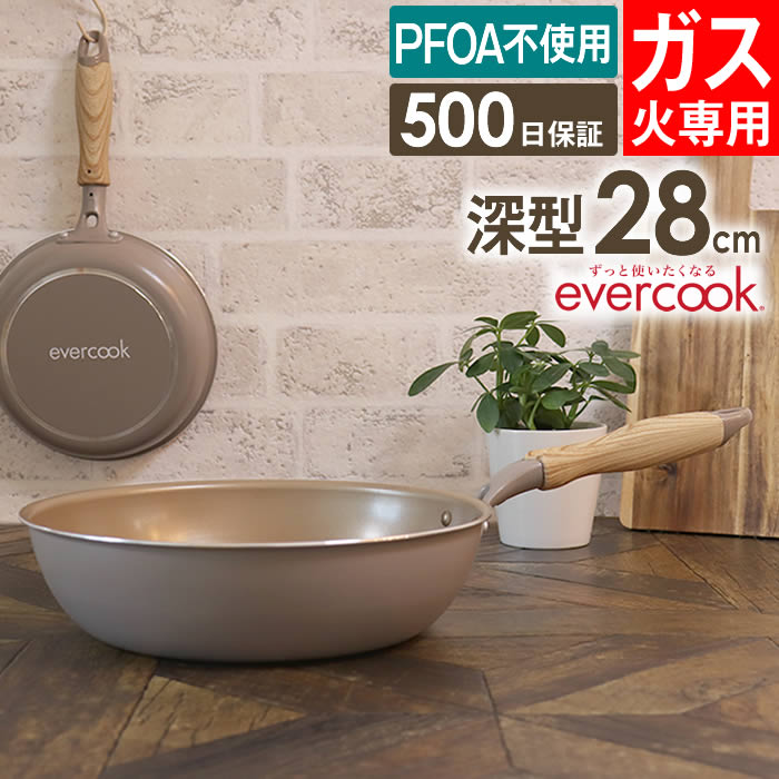 フライパン 28cm 深型 evercook エバークック ガス火専用 軽量 フライパン 28cm 深型 グレージュ EGDP28GRG2 ドウシシャ PFOA不使用 500日保証