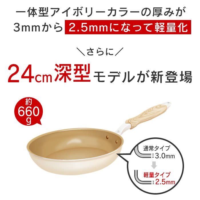 | evercook エバークック IH対応 フライパン24cm深型 エクリティ限定モデル アイボリー 品番:EIDP24RIV3 |