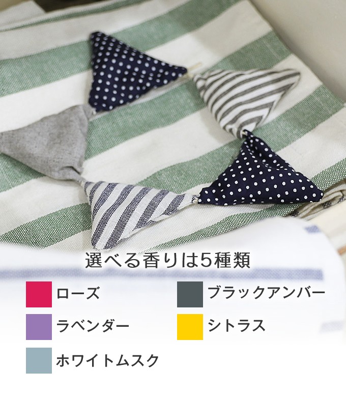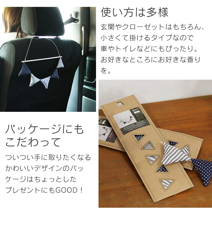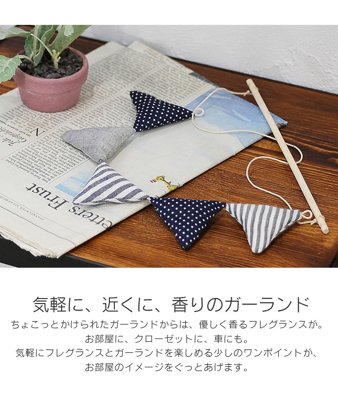 ちょこっとかけられたガーランドからは、優しく香るフレグランスが。お部屋に、クローゼットに、車にも。