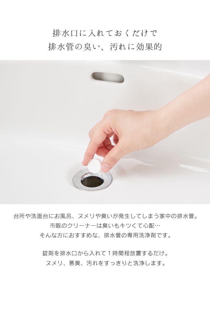 ご家庭にある排水管の気になるぬめりや汚れを落としてくれる洗剤です。 タブレットタイプで奥まで洗浄してくれます。 ササッと行えるので生活のルーティーンとして取り入れやすいです。 お子様のいるご家庭でも安心なやさしい洗剤です。 刺激臭がないので不快感がありません。 |