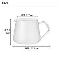 エッジが利いたシンプルデザインの耐熱ガラスコーヒーサーバー●Slow Coffee Styleシリーズの直線的なフォルムが美しい耐熱ガラスサーバーです。●耐熱ガラス製のサーバーは、約2杯分(300ml:1杯150mlとして)の抽出量の目安となる小さなドットがデザインされていて、容量は適正容量300ml、満水容量400mlです。●抽出時に目安量が分かる小さなドットがデザインされています。●サーバーは底面にオリジナルのロゴマークが入っています。●上にブリュワーを置いて、スマートにドリップできます。●SLOW COFFEE STYLEシリーズのお洒落な箱入りでのお届けですので、ギフトにもお薦めです。●スローというぜいたく、ゆったりとしたハンドドリップのコーヒータイムをあなたらしいスタイルで。