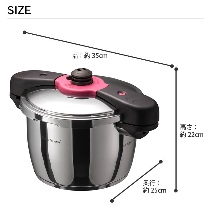 | NEW!日本最高クラスの超高圧140KPa(約126度)により99.9%圧力除菌が出来ます。高圧(80kPa・116度)との切り替えが可能。 沸騰のお知らせは、蒸気排出式です。両手で持ちやすく収納便利な5.5L、4〜5名のご家族にも最適サイズです。 4つの安心設計と日本国内(当社検査ラインにて)全品検査。焦げ付きにくい底三層構造。普段使いや温め直しに便利なガラス蓋付 オール熱源対応(ガスレンジは勿論、200V電磁調理器/ラジェントヒータ/ハロゲンヒーターも対応しております。) いつもの材料が柔らかくて目にも美味しい特別料理に。新レシピ「大活躍の圧力鍋レシピ100」付属 |