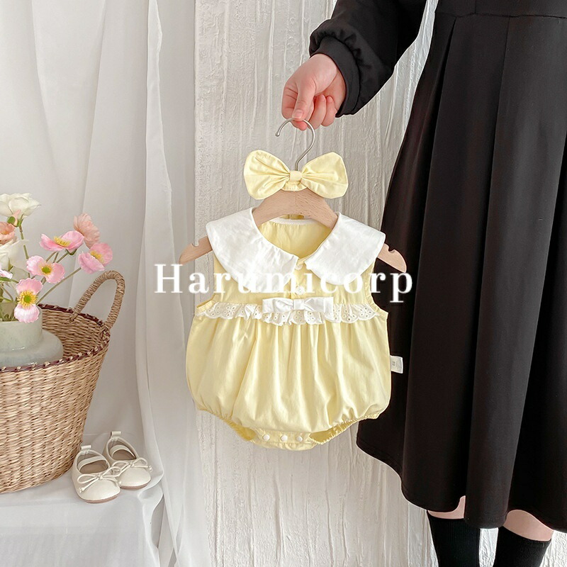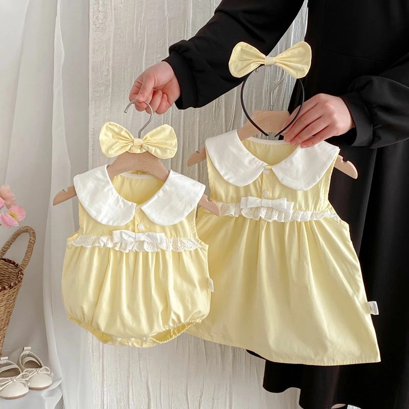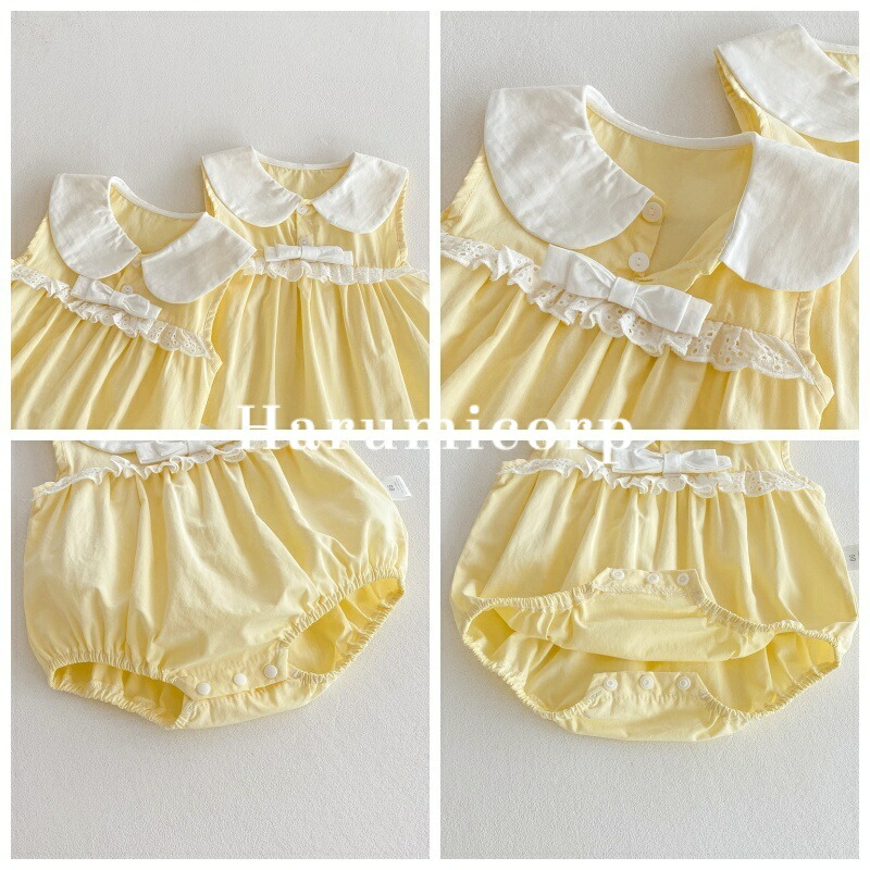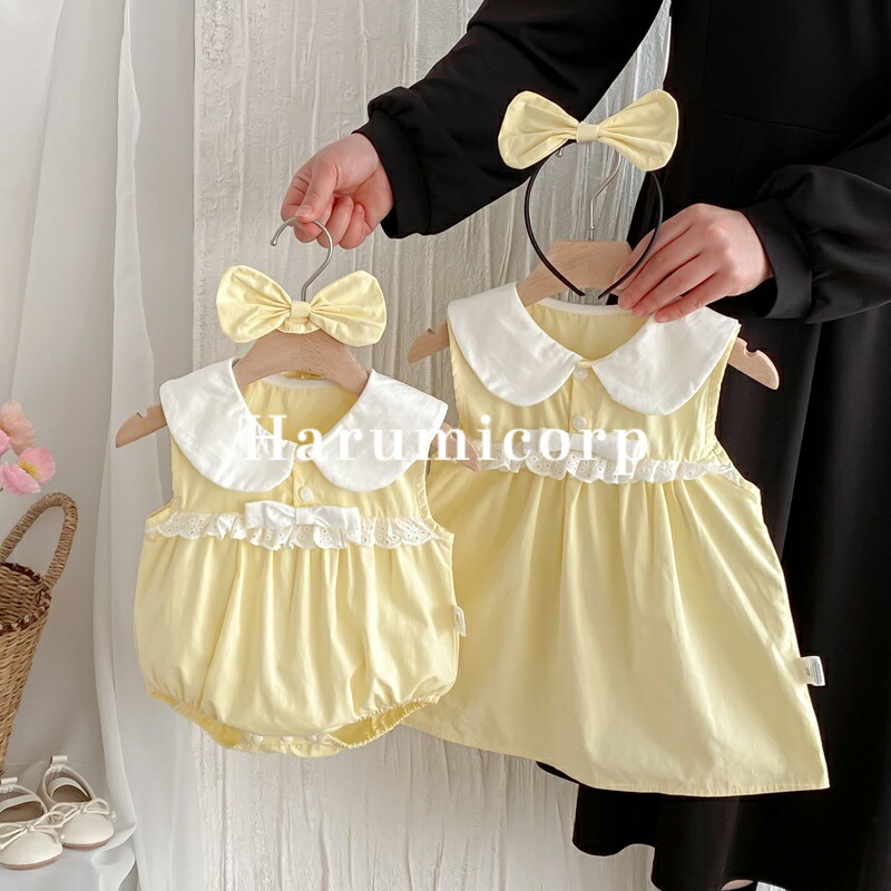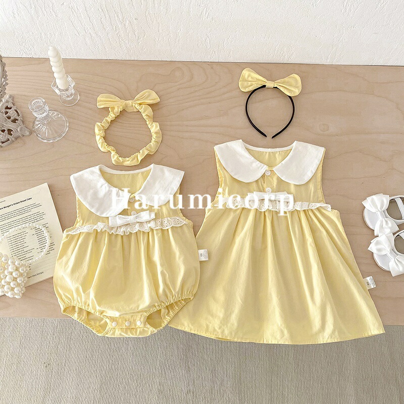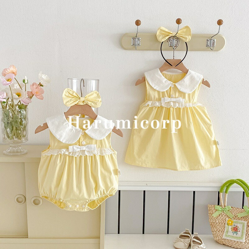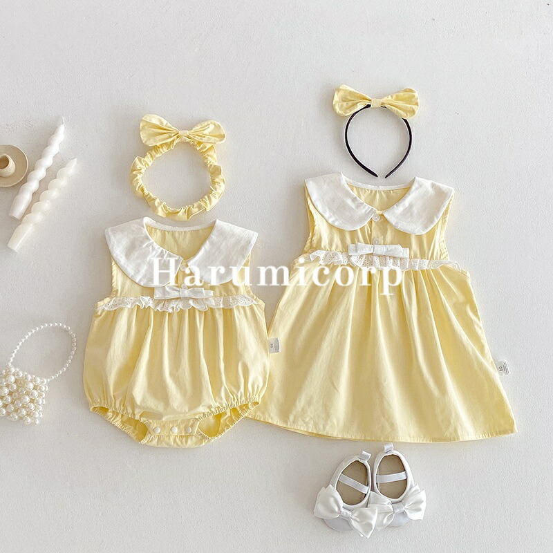 ベビー服 姉妹コーデ ヘアアクセサリー付き ロンパース ワンピース ドレス 蝶結び 女の子 ベビー キッズ 夏服 子ども 子供 新生児 赤ちゃん 姉妹 お揃い おしゃ