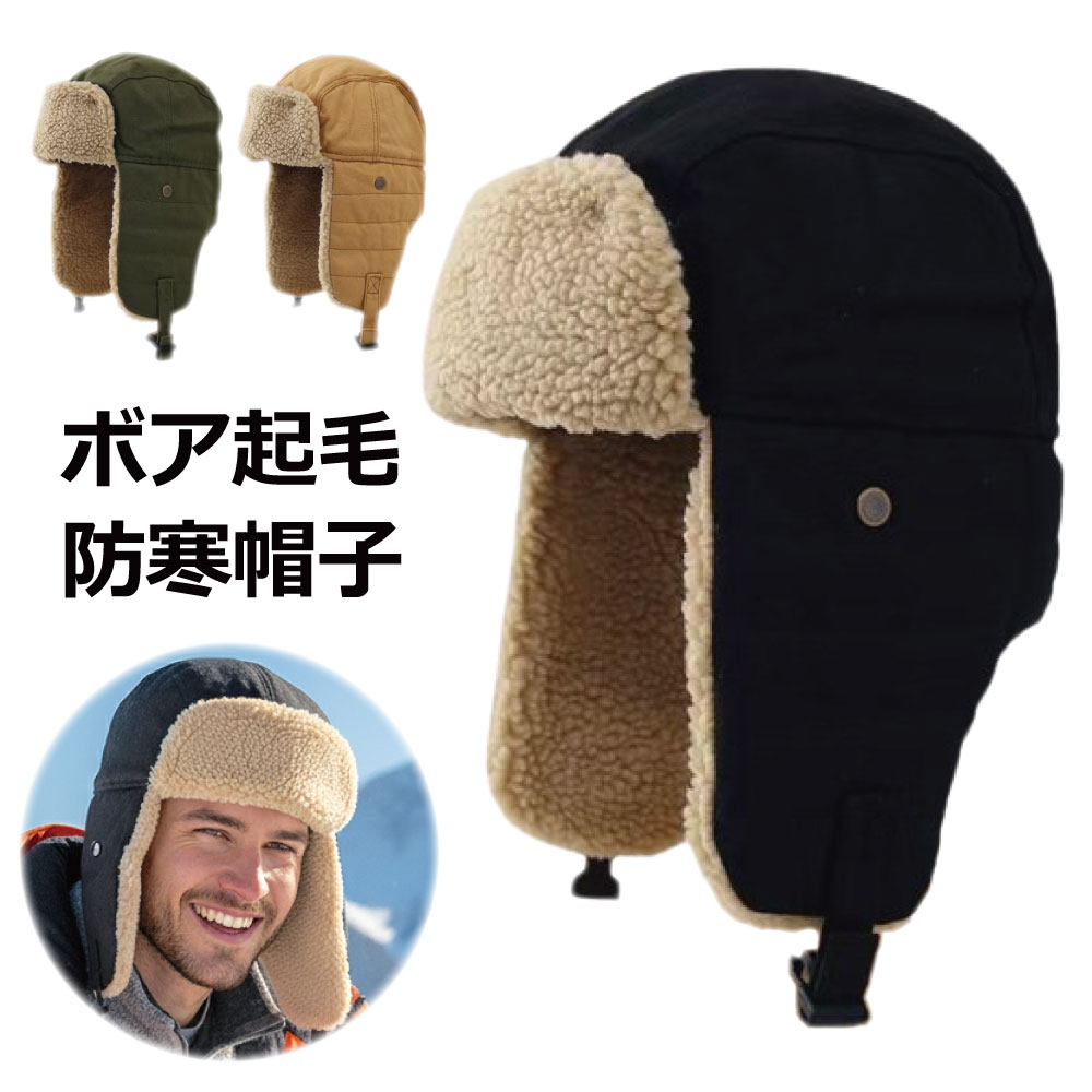 防寒帽子 メンズ 冬 ボンバーハット フライトキャップ 耳当て付き あったか ボア起毛 登山 釣り キャンプ