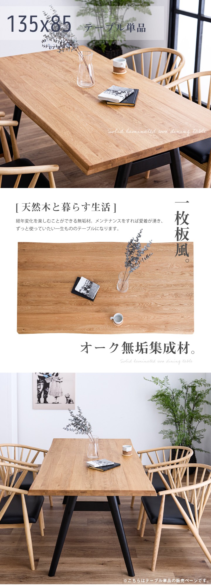 【期間限定特価】ダイニングテーブル 無垢 一枚板風 135 4人掛け用 135幅 木製 食卓テーブル 食卓 ダイニング ブラック 4人掛け 4人 / 木脚 黒脚 ブラック脚 おしゃれ モダン 食卓 長方形 木目 天然木 オーク オシャレ おしゃれ 送料無料 通販 sanjp-0616