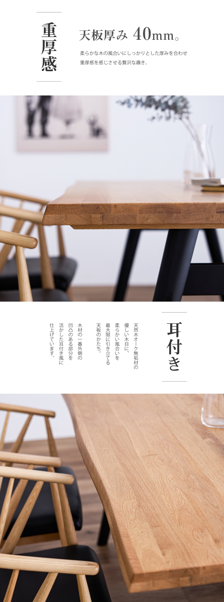 天板:オーク無垢材、PUウレタン塗装