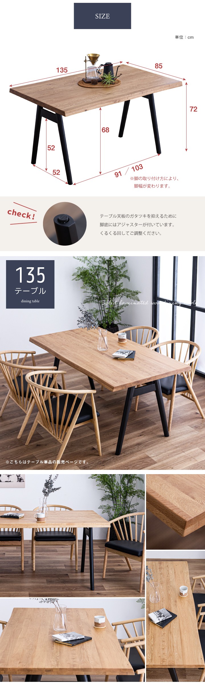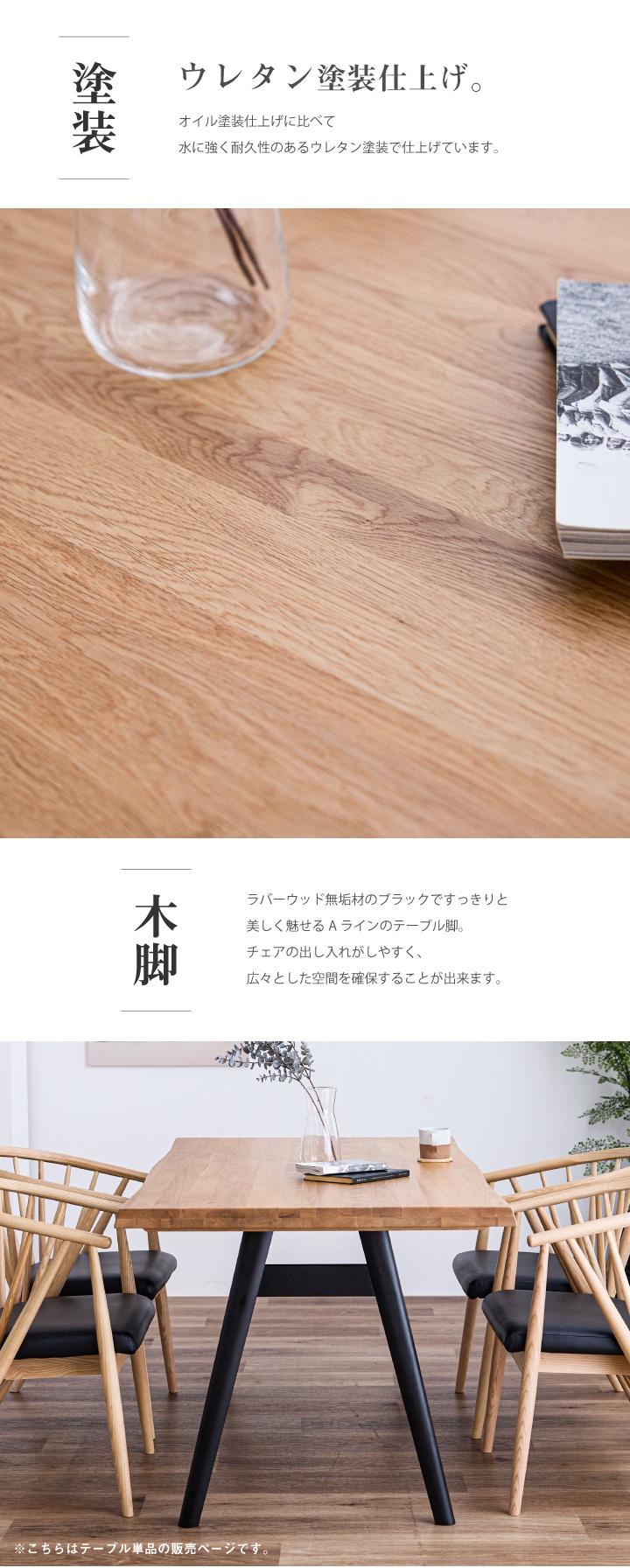 脚:ラバーウッド無垢材