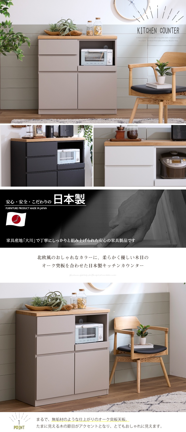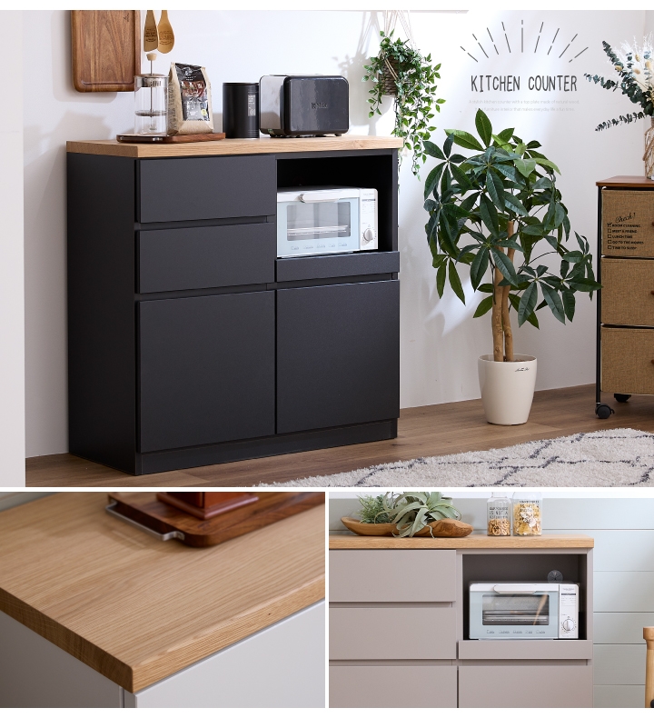 キッチンカウンター カウンターキッチン 幅90 レンジ台 木製 北欧 モダン / キッチンカウンター テーブル フルオープンレール 背面化粧仕上げ 可動棚 完成品 シンプル おしゃれ かわいい 白 黒 グレー 引き出し キッチン収納 大容量収納 通販 日本製 sanjp-0819