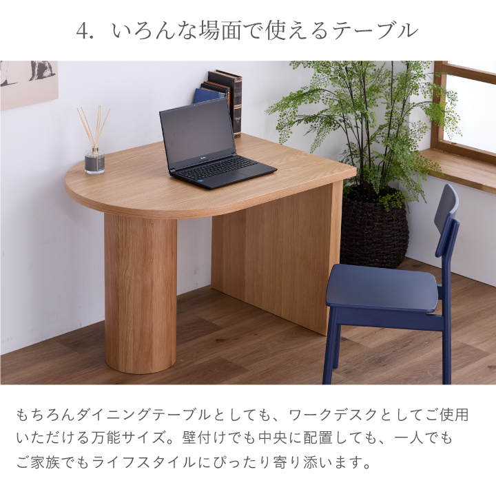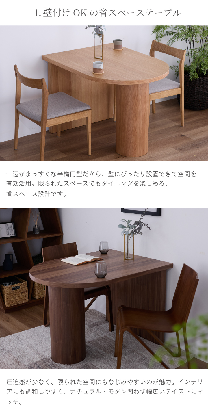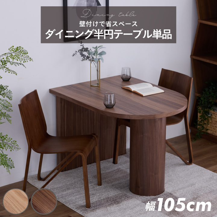 ダイニングテーブル おしゃれ 幅105cm 単品 半円 壁付け 二人掛け 木目 天然木 モダン シンプル ワンルーム コンパクト 北欧 オーク ウォールナット ナチュラル ブラウン 木製 和モダン 小さめ 狭い部屋 楕形 耐久性 北欧風 韓国風