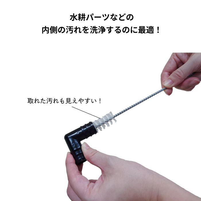 | 水耕パーツやホースを洗浄するためのナイロンの掃除ブラシです。内側の汚れを洗浄するのに最適です。 |