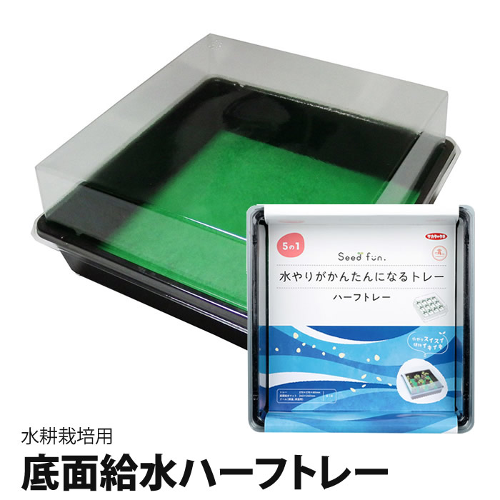 | 特長 | ・底面からムリなくムダなく水分コントロール! ・草花・野菜の育苗、育成にピッタリ! ・底面吸水なので、細かいタネでも流れてしまう心配がなく安心! ・スポンジやロックウールなどの培地を使用した発芽育苗にも便利! ・液肥があれば一番カンタンでシンプルな水耕栽培の完成!»おすすめの一液液肥 ・人気のスプラウト栽培にも最適!»スプラウトの種はコチラ |