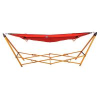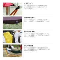 ・ハンモックには絶対に足から乗らないでください。まずハンモックにまたがり、ゆっくりと腰から上半身にかけて横たわり、最後に足を乗せてください。降りる際はゆっくりと足から降りてください。