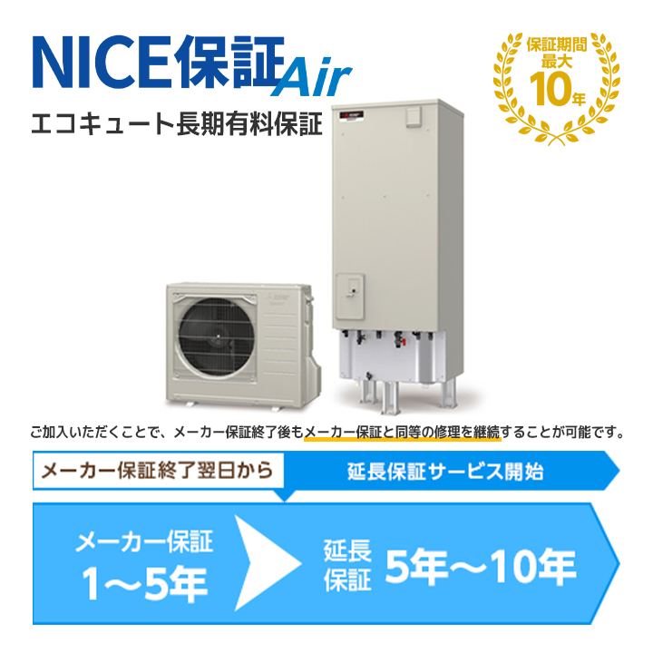 エコキュート・IHクッキングヒーターは長期に渡って利用する住宅設備です。長期で安心してお使い頂くために、メーカーの基本無料保証とは別に