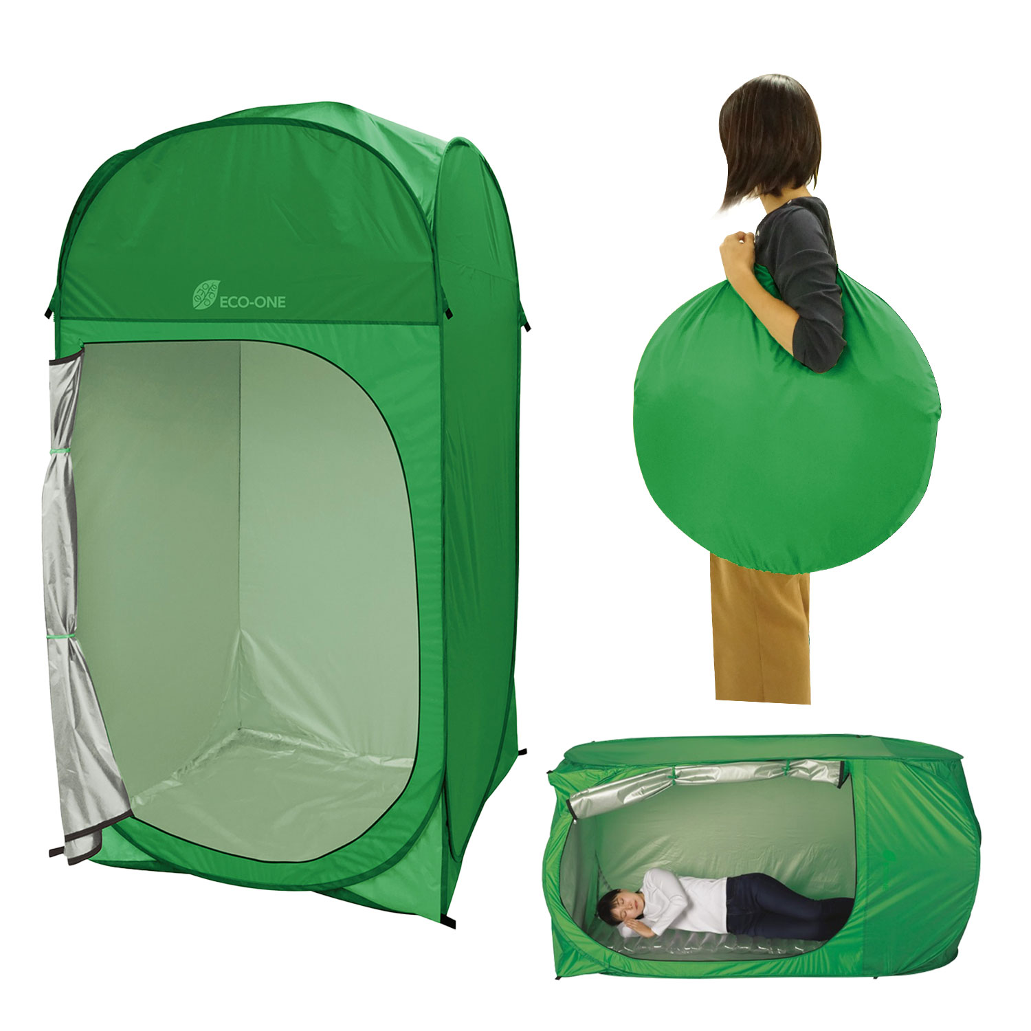 エコワン防災プライバシーテントは透けない生地を使っているので、着替える時も安心です。災害時の非常用トイレの目隠しにも最適です。
