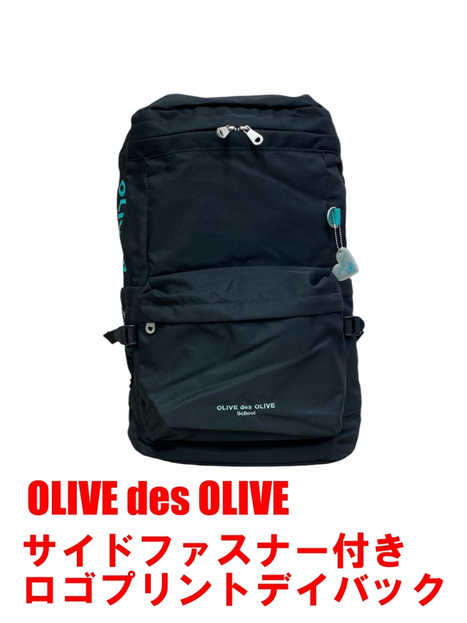 サイドファスナー付きロゴプリントデイバック OLIVE des OLIVE 通学バック 通学カバン 中学生 高校生