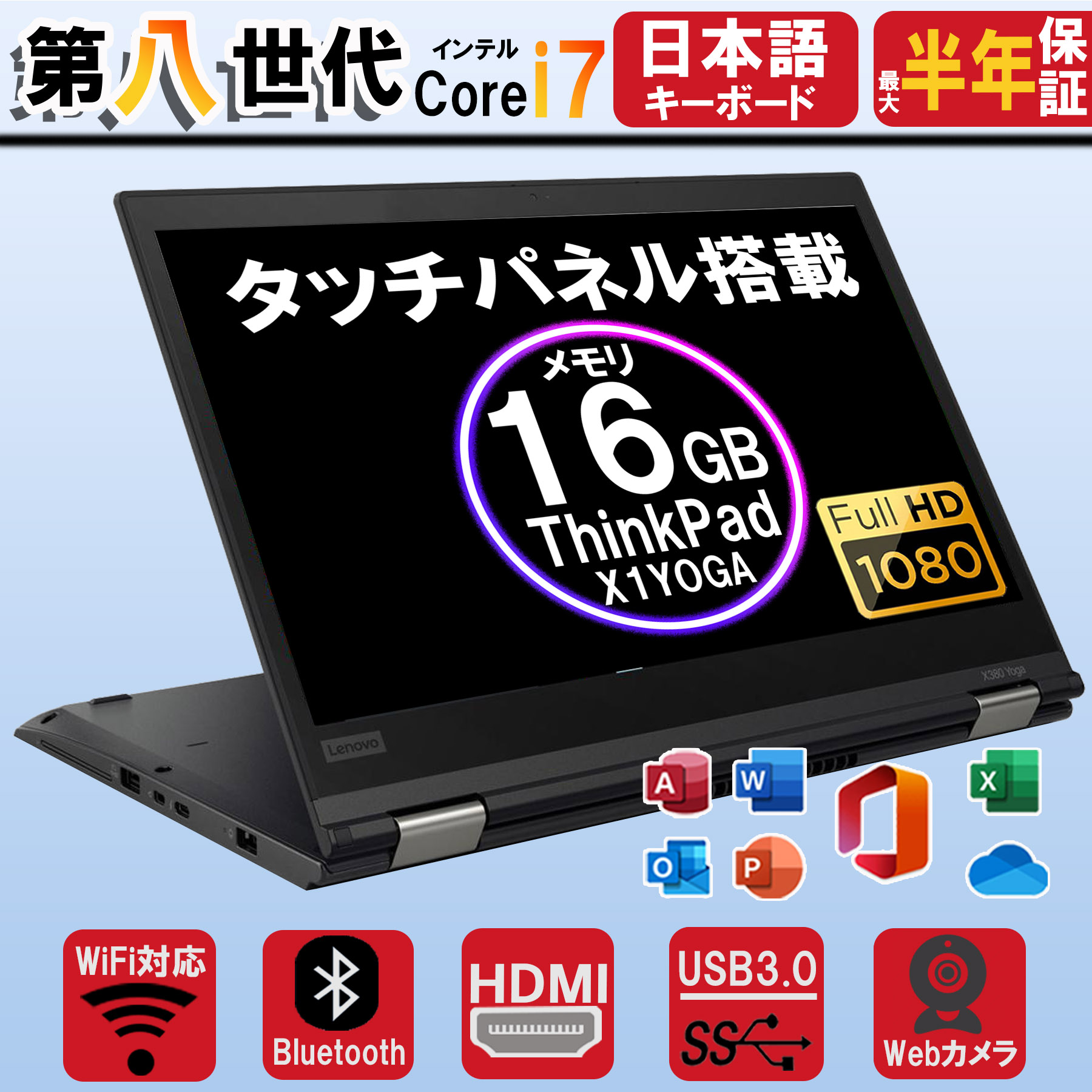 ノートパソコン Lenovo ThinkPad X1 Yoga(Gen4) 第8世代Corei7 タッチパネル搭載 中古パソコン MS office2024可 WEBカメラ windows11 中古ノートパソコン