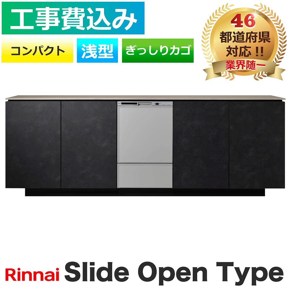 【工事費込】 食洗機 交換 リンナイ RSW-C402CA-SV スライドオープン 標準 コンパクト シルバー ぎっしりカゴ ビルトイン 食器乾燥機 メーカー認定施工