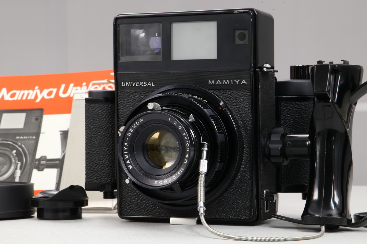 | レンズ | MAMIYA-SEKOR 100mm F3.5 はカビ・くもりなく、映りに影響するような傷みも見られません。 ボディ側のレンズ(シャッター羽根の後ろ側のレンズ)もカビやくもりはなくきれいな状態です。 絞り羽根は非常にきれいな状態で、スムーズに開閉します。 シャッター羽根も目立つ傷みのない正常な状態です。