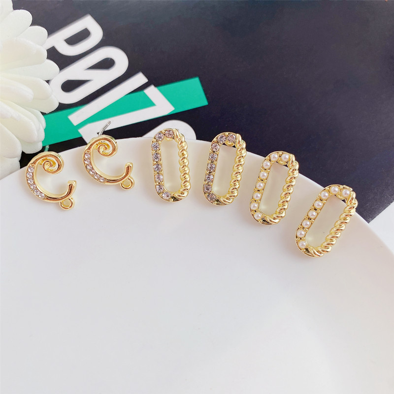 【2ケ】s925 c型 オパール ラインストーン付 ポストピアス チャームパーツ 金具 パーツ ピアス パール アクセサリー カン付