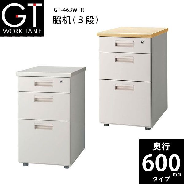 【GTシリーズ/奥行600mm】 脇机(3段) GT-463WTR W410×D600×H700mm