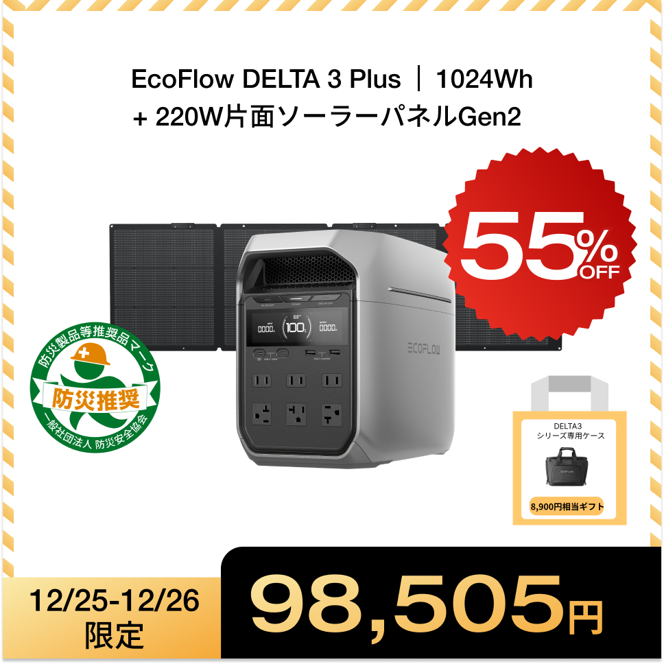 ポータブル電源 ソーラーパネル セット リン酸鉄 DELTA 3 Plus + 220W片面ソーラーパネルGen2 太陽光発電 車中泊 家庭用 蓄電池 防災 節電 EcoFlow エコフロー