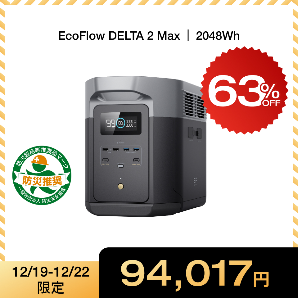 ポータブル電源 大容量 DELTA 2 Max 2048Wh リン酸鉄 5年保証 家庭用 バッテリー キャンプ 防災グッズ 蓄電池 バッテリー充電器 EcoFlow エコフロー