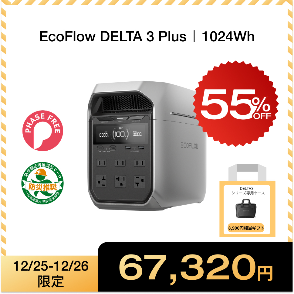 【タイムセール】ポータブル電源 大容量 EcoFlow DELTA 3 Plus 1024Wh 防災 蓄電池 リン酸鉄 家庭用 バッテリー 急速充電 キャンプ 車中泊 停電 エコフロー