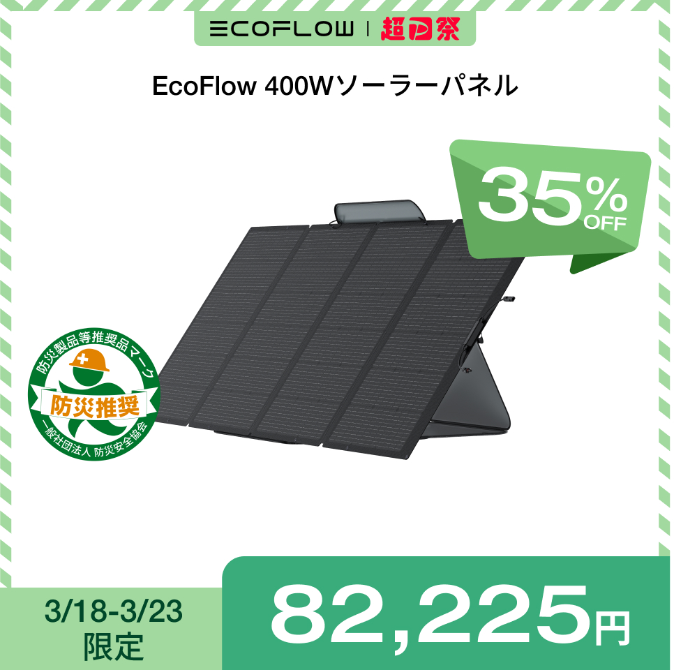 業界高級のパワフルな折りたたみ式 持ち運びができるソーラーチャージャーとして驚きの400W出力を誇るのが、EcoFlow 400Wソーラーパネルです。二酸化炭素が出ない環境に優しい発電方法というだけでなく、業界トップクラスの発電効率でキャンプや車中泊のお供に、そして防災グッズとしてマルチな場面でご使用いただけます。