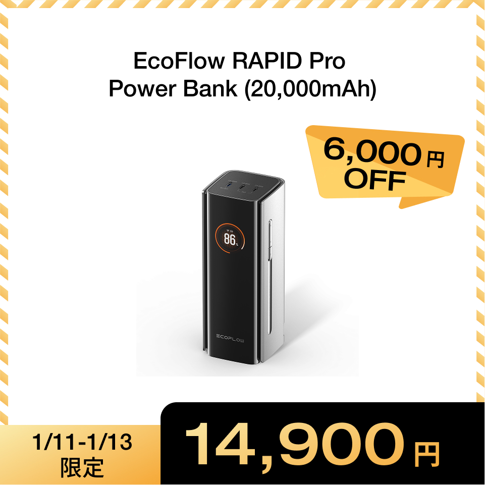 EcoFlow RAPID Pro Power Bank (20,000mAh, 230W, 100W USB-Cケーブル内蔵) 4台まとめて急速充電 USB-C入出力 アプリ連携可能 iPhone対応 エコフロー