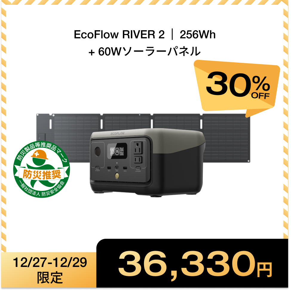 EcoFlow ポータブル電源 ソーラーパネル セット RIVER 2 + 60W(Type-c) 太陽光発電 太陽光パネル 家庭用 蓄電池 ソーラー 急速充電 車中泊 節電 停電