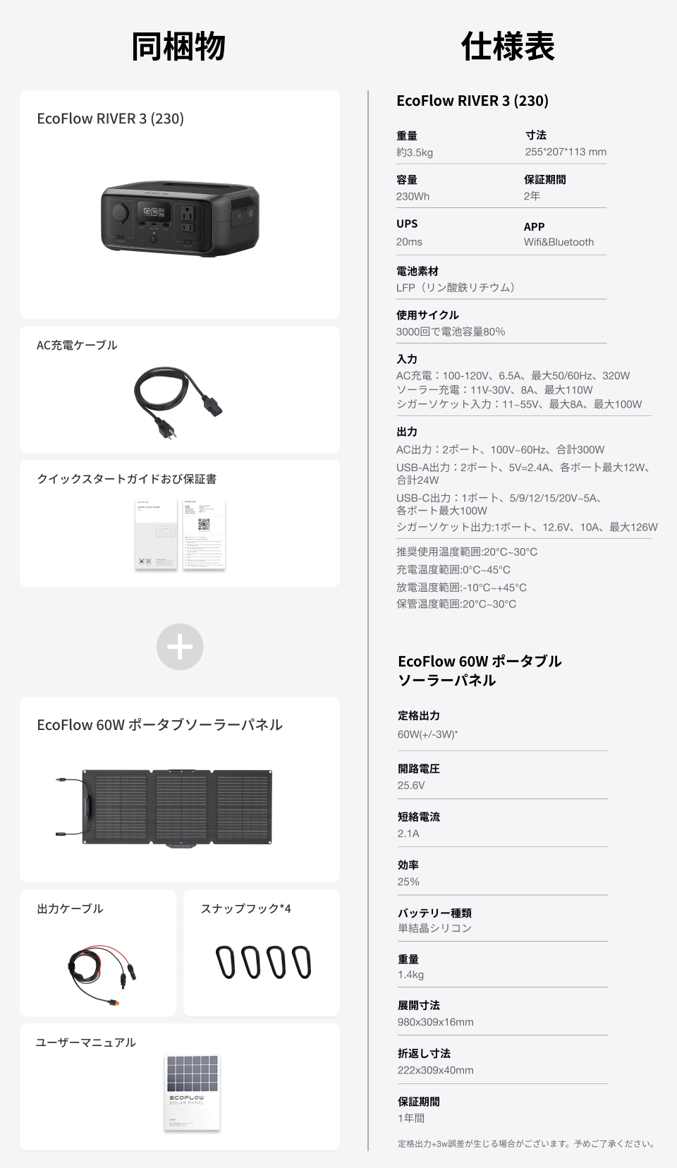 EcoFlow RIVER 3は、コンパクトサイズでありながらパワフルな性能を誇り、アウトドアや災害時の停電対策に最適なエントリーモデルです。